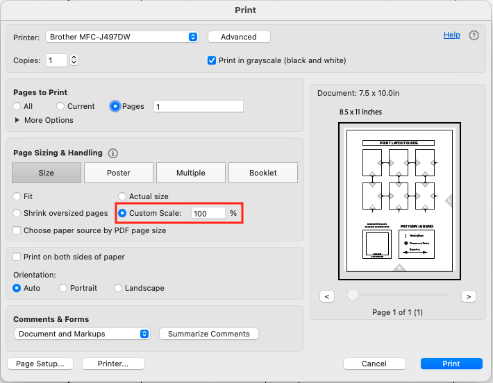 We recommend a PDF software such as free Adobe Acrobat Reader. Mac users are able to print directly from Preview at 100% scaling. Our PDF patterns are layered so you can select only the size or sizes you wish to work with, however this function is only available using Adobe Acrobat.